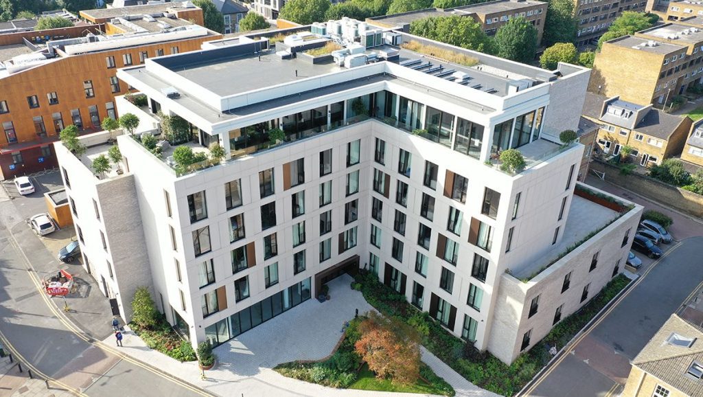 Hazel Court is a new-build five storey building in London. The scope of works included the design, fabrication and installation of all elements of the exterior facade including the porcelain and bronze stainless steel cladding panels, capping stones and aluminium subframe system.